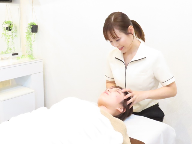 東京赤坂で予約が取れないと評判の整体師から「あたまの整体」を直接学び、その要素を取り入れた独自のヘッドスパを実施。頭の筋肉やツボに丁寧にアプローチし、首肩のこわばりや目の疲れ、ストレスによる緊張を緩めていきます。